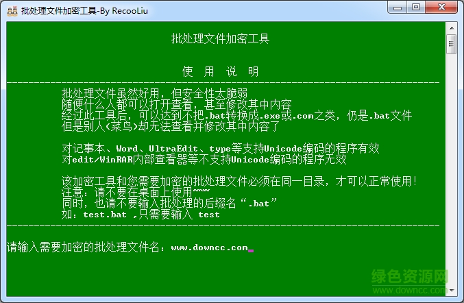 批處理文件加密工具是一款對(duì)BAT文件進(jìn)行加密的供米,讓他人無(wú)法直接查看BAT文件,操作方法也非常簡(jiǎn)單,軟件綠色無(wú)需安裝,需要的朋友快來(lái)綠色資源網(wǎng)下載吧!