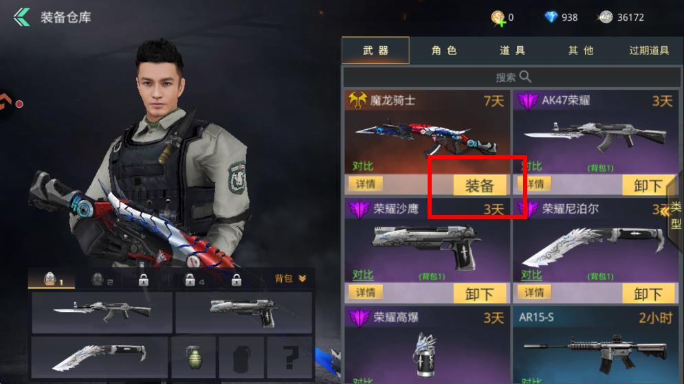3、找到想要更換的武器類型,比如你想更換主武器,在主武器列表中,找到心儀的武器,點(diǎn)擊該武器下方的裝備按鈕。
