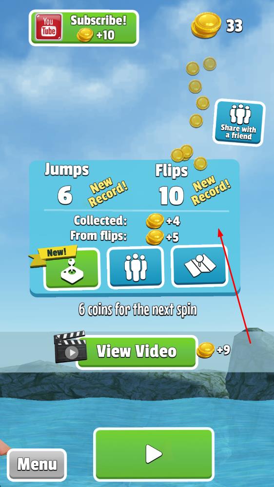 1、進(jìn)入游戲后,先挑選關(guān)卡與人物,觀察當(dāng)前場景如懸崖、輪船的布局,待時機(jī)成熟點(diǎn)擊屏幕,控制人物完成起跳動作,開啟跳水挑戰(zhàn)。