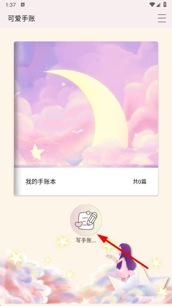 1、打開(kāi)可愛(ài)手賬app,在主界面點(diǎn)擊寫手賬按鈕,進(jìn)入手賬編輯頁(yè)面。