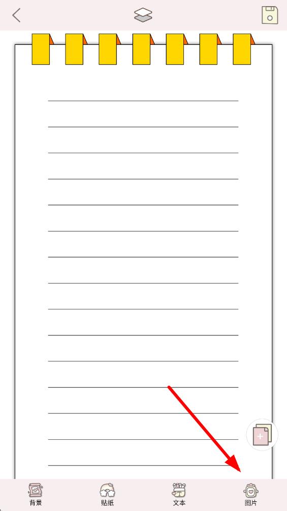 2、在手賬編輯頁(yè)面中,點(diǎn)擊底部功能欄里的圖片選項(xiàng)。
