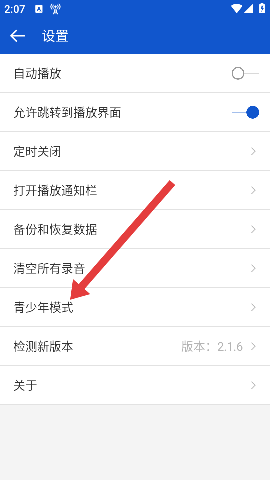 2、在設(shè)置界面中,點(diǎn)擊青少年模式選項(xiàng),進(jìn)入青少年模式設(shè)置頁面。