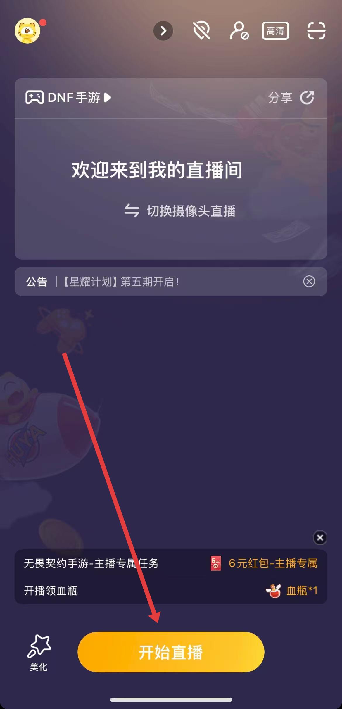3、選擇好游戲后,回到直播界面,編輯直播間標(biāo)題等信息,然后點(diǎn)擊下方的開(kāi)始直播按鈕,即可開(kāi)啟直播。