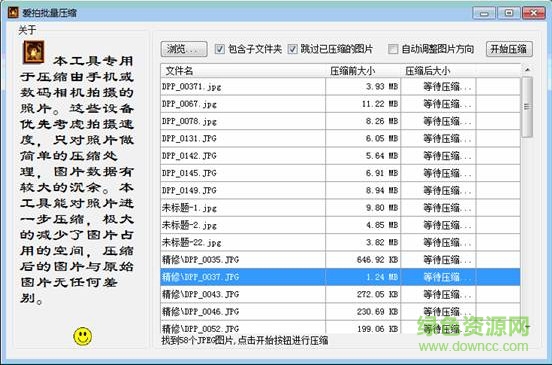 3.此工具只對擴展名為jpg、jpe、jpge的圖片做壓縮,其它文件一律忽略。