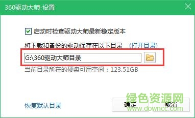 3. 如果重裝作業(yè)系統(tǒng)后需執(zhí)行還原驅(qū)動,應(yīng)提前完整保存復(fù)制整個驅(qū)動備份文件夾到其他盤中。驅(qū)動備份文件夾可在360驅(qū)動大師操作頁面右上角點選設(shè)置,并可自行指定設(shè)置下載和備份的驅(qū)動保存目錄位置(亦可點選恢復(fù)默認(rèn)目錄)。