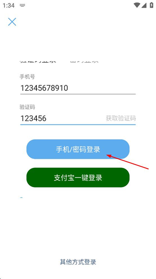 4、點擊手機/密碼登錄按鈕,完成登錄操作。