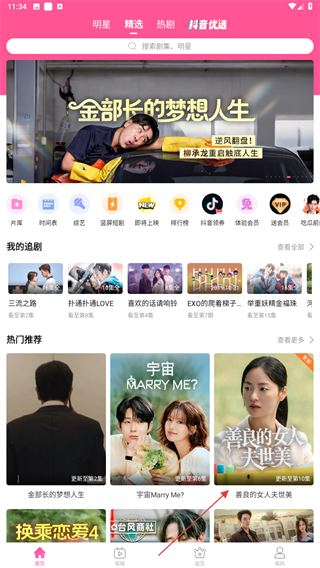1、打開韓小圈的應(yīng)用,進(jìn)入時(shí)點(diǎn)擊要播放的電視劇內(nèi)容。