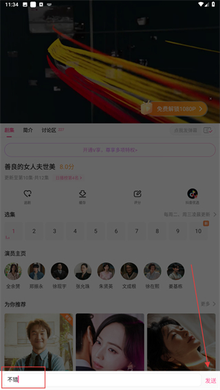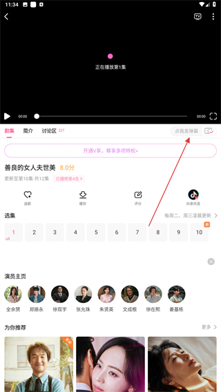 2、進(jìn)入電視劇播放的頁面內(nèi),點(diǎn)擊發(fā)彈幕的功能按鈕。