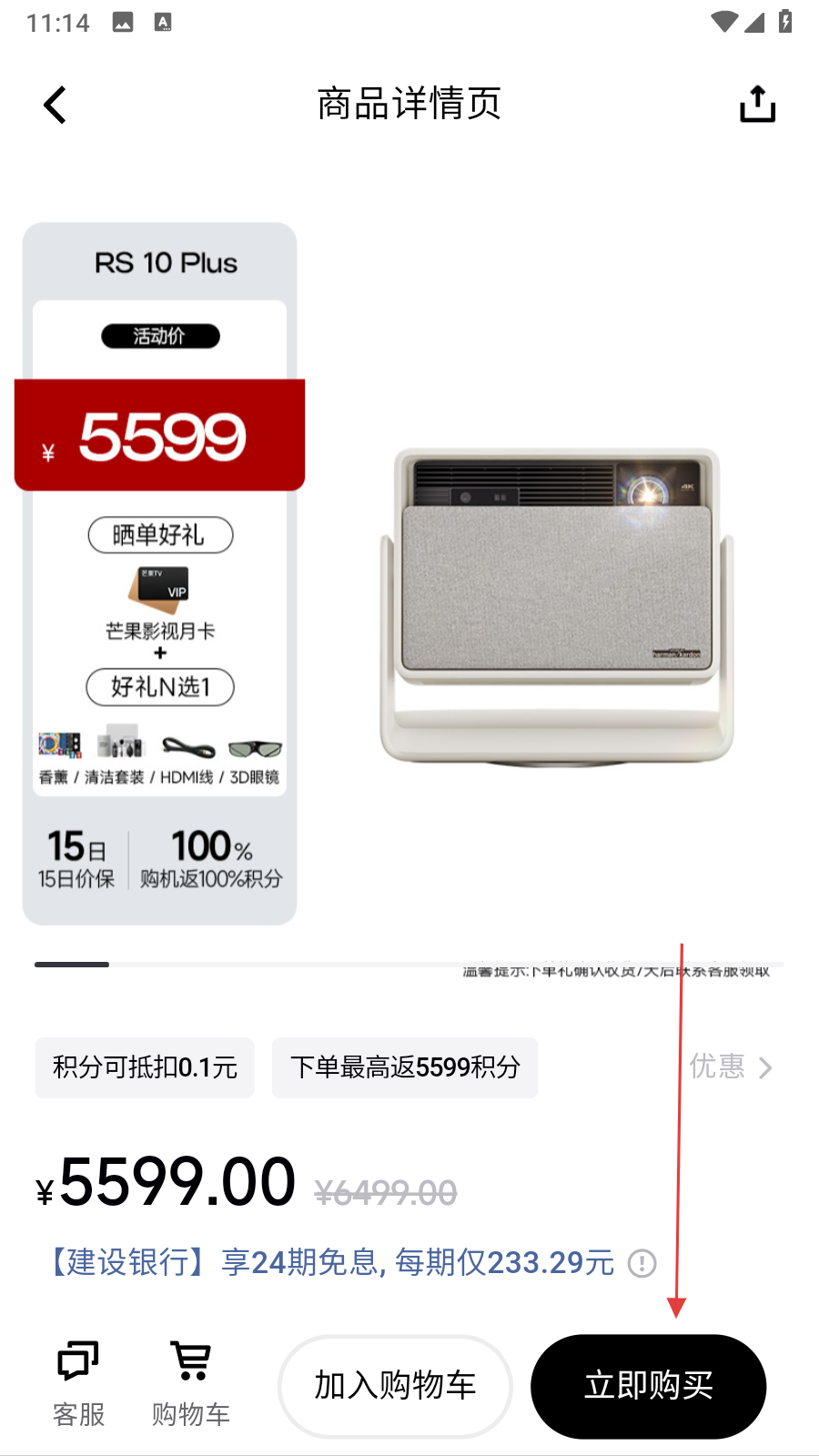 2、進(jìn)入商品詳情頁后,查看商品價格、活動等信息,確認(rèn)后點擊立即購買。