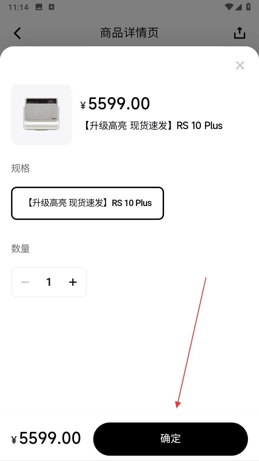 3、在彈出的規(guī)格選擇窗口中,確認(rèn)商品規(guī)格和購買數(shù)量,點擊 確定。