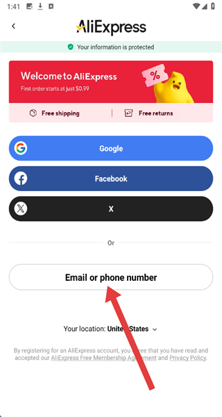 2、在進(jìn)入注冊(cè)主頁(yè)中,可以點(diǎn)擊下方按鈕,以電子郵箱的方式進(jìn)行注冊(cè)賬號(hào)。