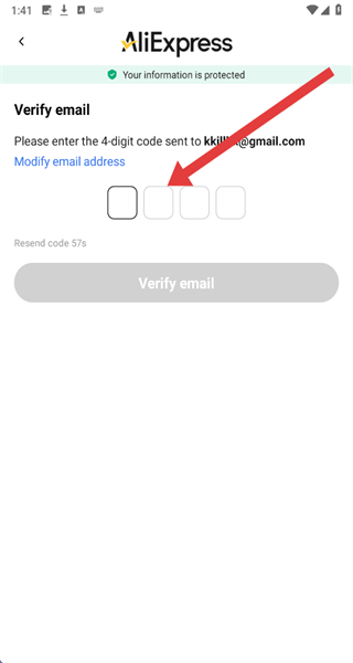 4、在進(jìn)入郵箱驗(yàn)證頁(yè)面后,點(diǎn)擊方框輸入框發(fā)送到郵箱的驗(yàn)證碼,點(diǎn)擊下方按鈕即可完成驗(yàn)證注冊(cè)賬號(hào)。