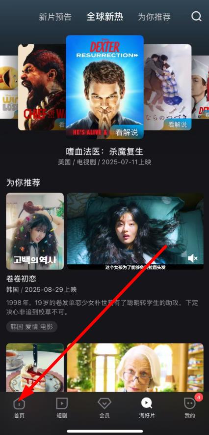 1、打開優(yōu)酷APP,點擊底部導(dǎo)航欄中的首頁進入首頁界面。