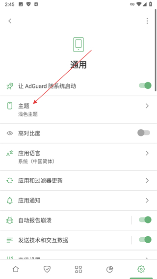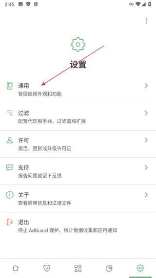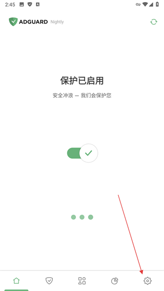 1、打開AdGuard應用,點擊設置圖標。