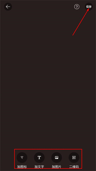 4、在名片編輯頁面可添加圖標(biāo)、文字、圖片、二維碼等內(nèi)容,編輯完成后點(diǎn)擊保存按鈕。