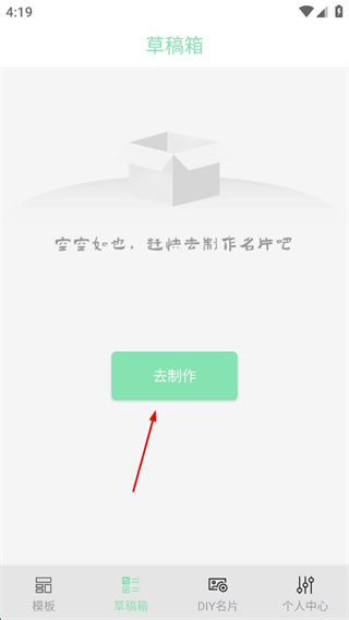 2、在草稿箱頁面點(diǎn)擊去制作按鈕,進(jìn)入橫版名片模板選擇頁面。