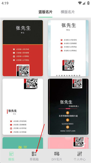 沒有制作完成的名片可以保存到草稿箱,下一次還可以繼續(xù)進(jìn)行編輯;