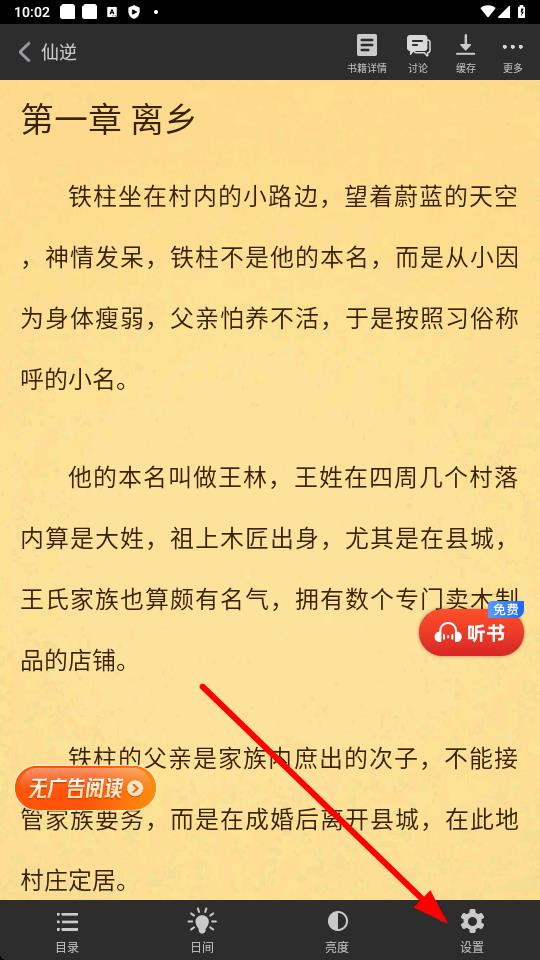 1、在追書神器app閱讀界面,點擊屏幕下方的設置按鈕。