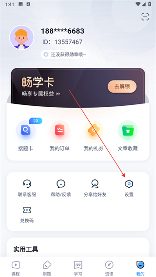 2、進入個人頁面后點擊設(shè)置選項,進入設(shè)置頁面。