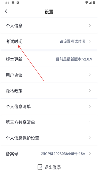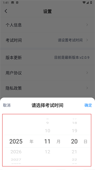 3、在設(shè)置頁面點擊考試時間選項,彈出日期選擇框。