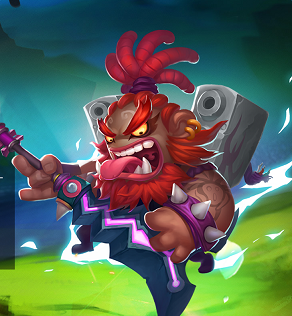 雙耳垂肩,雙臂過(guò)膝,這明顯是猿人沒(méi)有蛻變完成啊!擅長(zhǎng)強(qiáng)力增益,免疫傷害,屬于武力型英雄.主動(dòng)技"揮斬",揮動(dòng)大劍,對(duì)面前小范圍內(nèi)的所有敵方單位造成 1850 點(diǎn)傷害.