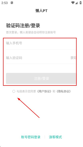 3、。輸入手機(jī)號碼、驗證碼,勾選協(xié)議,點(diǎn)擊注冊即可。