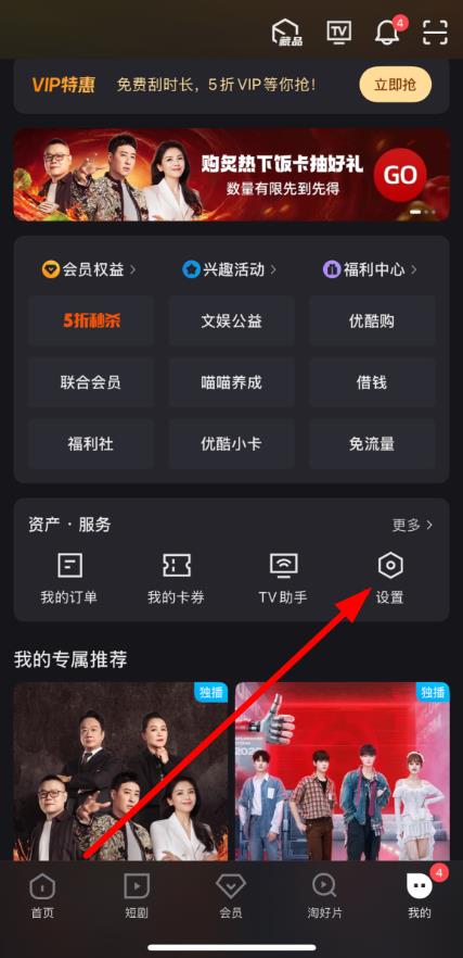 1、打開(kāi)優(yōu)酷APP,點(diǎn)擊底部導(dǎo)航欄中我的選項(xiàng)進(jìn)入個(gè)人界面。