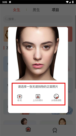 3、可以直接拍照然后換發(fā)型,可以在相冊選擇有人臉的圖片來換發(fā)型。