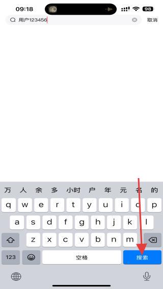 2、進(jìn)入搜索界面內(nèi),在輸入框中輸入要添加的用戶昵稱,再點(diǎn)擊右下角搜索的按鈕。