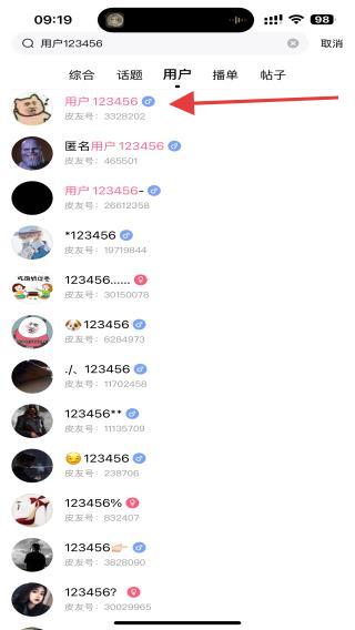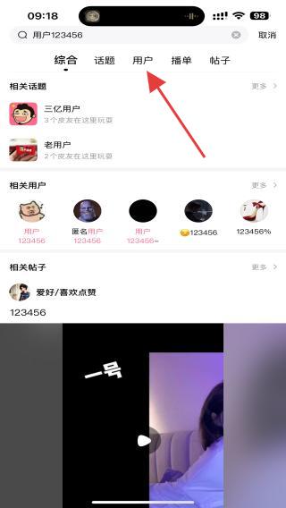 3、搜索結(jié)果出來(lái)后,將標(biāo)簽切換成用戶,點(diǎn)擊即可。