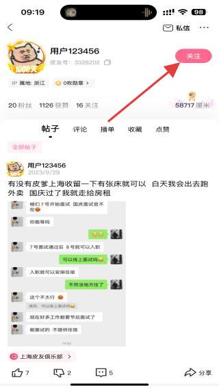 5、進(jìn)入到個(gè)人主頁(yè)內(nèi),點(diǎn)擊右側(cè)關(guān)注的按鈕即可完成添加。