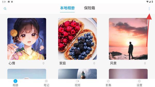 1、打開私密相冊APP,在首頁內(nèi)點擊右上角三個點的圖標。