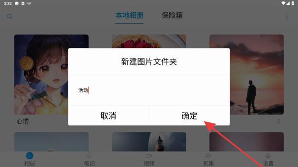3、在輸入框內(nèi)輸入相冊名稱,再點擊確定的按鈕。