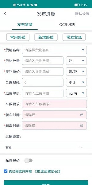 1、發(fā)布貨單的時候貨主可以自行報價,每個貨單的運費價格可以知己輸入;