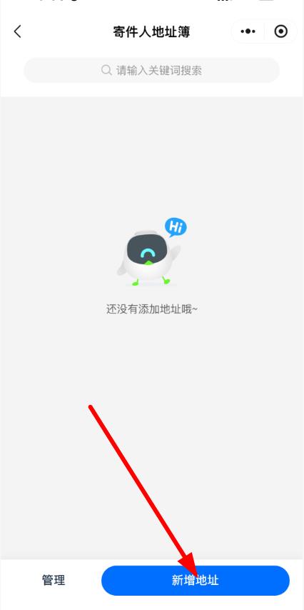 2、在寄件界面,若未添加寄件地址,點(diǎn)擊新增地址,填寫寄件人相關(guān)信息完成地址添加。