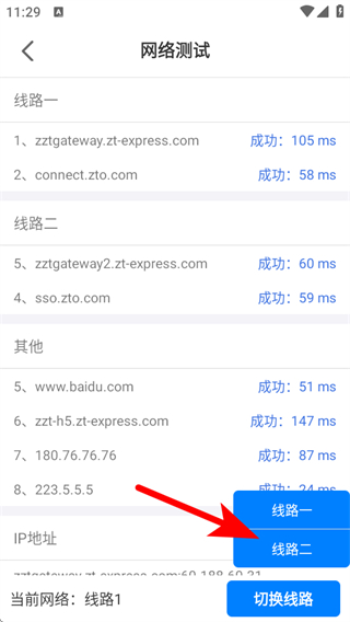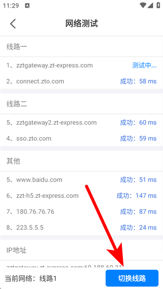 2、進(jìn)入網(wǎng)絡(luò)測(cè)試的頁(yè)面后,需要點(diǎn)擊切換線路的按鈕。