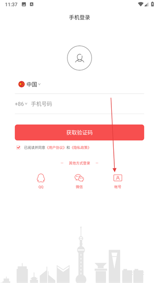 1、打開掌知識APP,在手機登錄頁面點擊帳號選項。