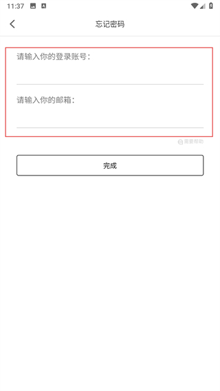 4、輸入登錄賬號和郵箱,輸入完成后點擊完成按鈕。
