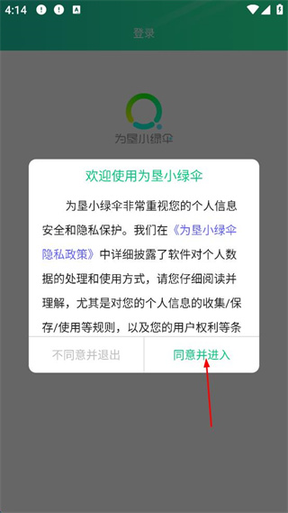 3、勾選同意為墾小綠傘隱私政策后點(diǎn)擊“確認(rèn)”。