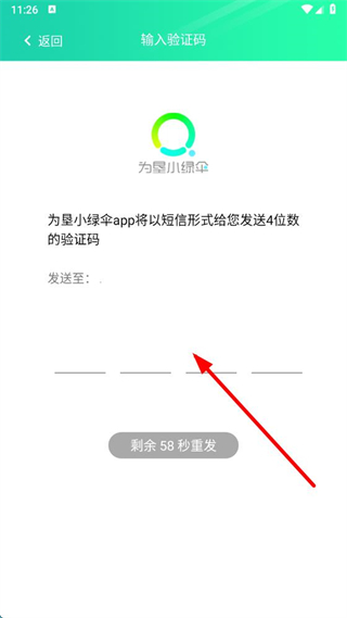 2、在輸入驗(yàn)證碼界面,輸入收到的4位數(shù)驗(yàn)證碼。