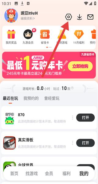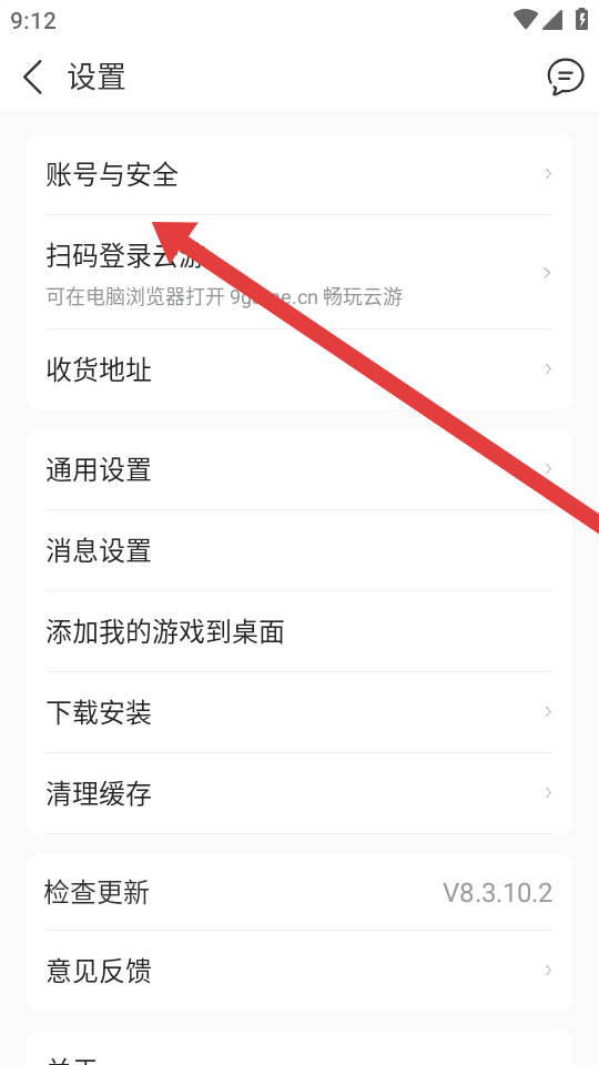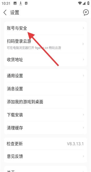 1、進入九游賬號設置的頁面后,需要點擊賬號與安全的選項,進入賬號安全設置的界面。