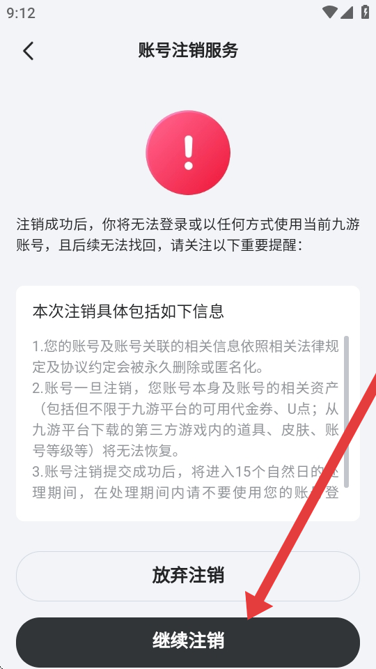 3、在賬號注銷服務頁面里,仔細閱讀注銷提醒后點擊繼續(xù)注銷,后續(xù)按提示完成后續(xù)驗證即可提交注銷申請。