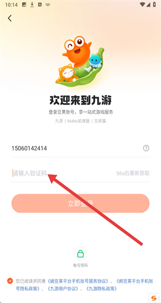 4、可以點擊下方輸入框填寫獲取到的驗證碼后,點擊立即登錄按鈕完成登錄操作。