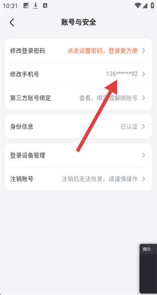 3、在進入到賬號與安全頁面后,可以點擊修改手機號選項,進行更換綁定手機號。