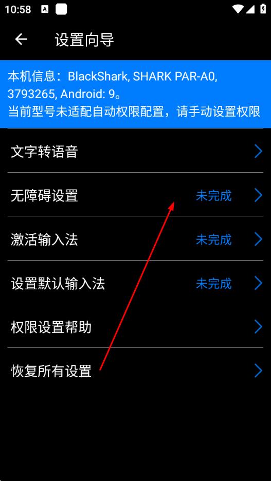 2、進(jìn)入設(shè)置向?qū)ы?yè)面后,點(diǎn)擊無(wú)障礙設(shè)置選項(xiàng),此時(shí)會(huì)提示相關(guān)操作要求。