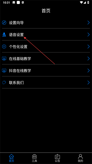 1、打開保益悅聽?wèi)?yīng)用,在首頁(yè)點(diǎn)擊語(yǔ)音設(shè)置選項(xiàng)。