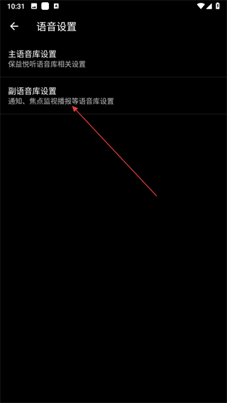 2、進(jìn)入語(yǔ)音設(shè)置頁(yè)面后,點(diǎn)擊副語(yǔ)音庫(kù)設(shè)置選項(xiàng)。