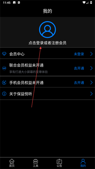 1、打開保益悅聽APP,點(diǎn)擊右下角我的選項(xiàng)。