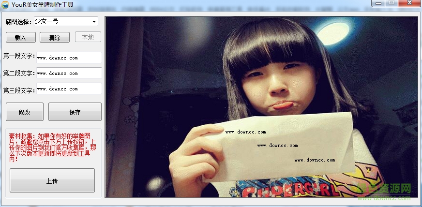 Your美女舉牌制作工具是一款綠色免費(fèi)的舉牌照制作軟件,讓你的愛(ài)豆、對(duì)象或親友們能在人海茫茫中一眼看到你,軟件小巧實(shí)用,方便快捷,喜歡就快來(lái)綠色資源網(wǎng)下載吧!