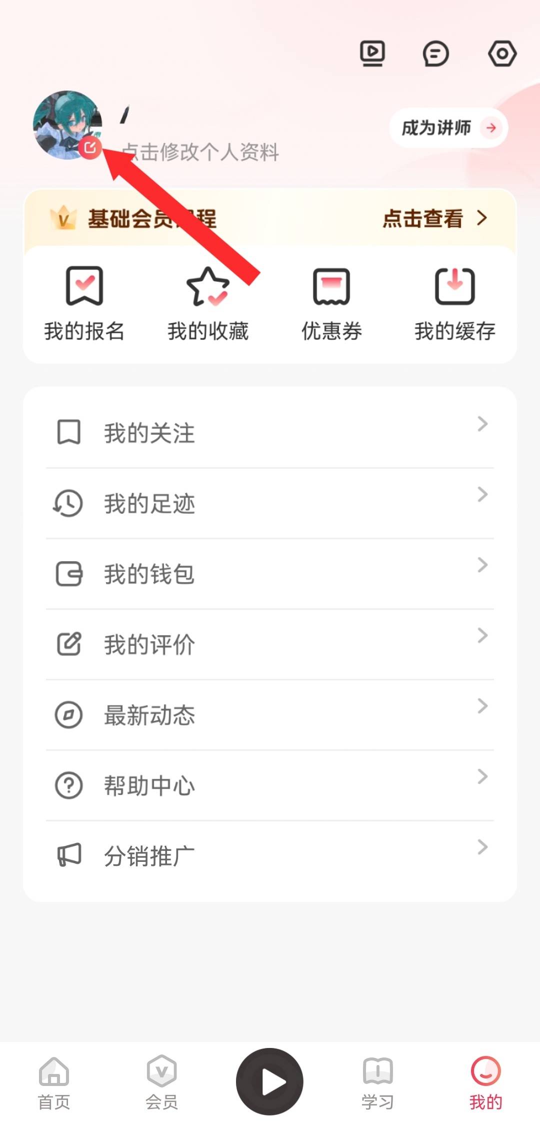 2、在個人頁面,點擊頭像旁的編輯圖標,進入編輯我的資料頁面。